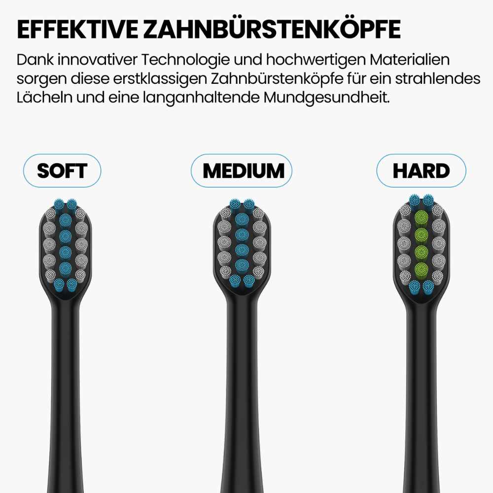 Im Lieferumfang der Schallzahnbürste ist 3x der Bürstenkopf Pro enthalten. (Soft, Medium, Hard)